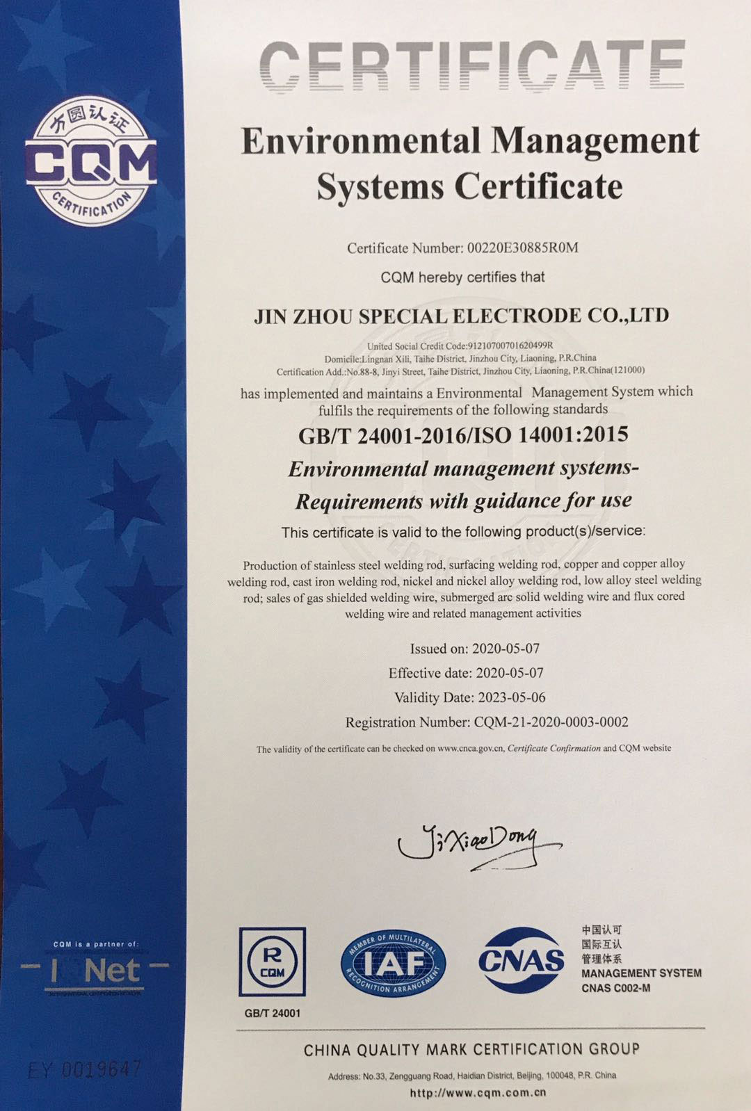 認(rèn)證名稱:Environmental Management Systems Certificate