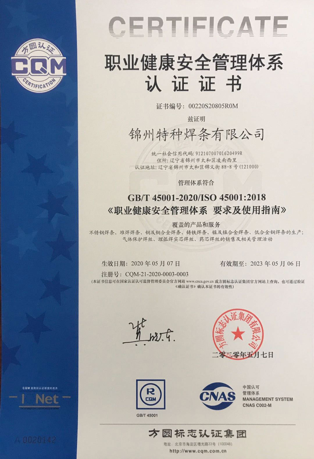 認(rèn)證名稱:Occupational Health and Safety Management Systems Certificate