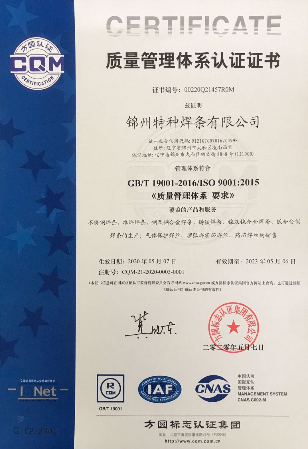 認(rèn)證類別:GB/T 19001-2016/ISO 9001:2015《質(zhì)量管理體系 要求》